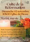 - Culte de la Réformation, dimanche 02 novembre 10h avec la participation de Mme Nicole Hurni violoncelliste et Sven Mûller organiste